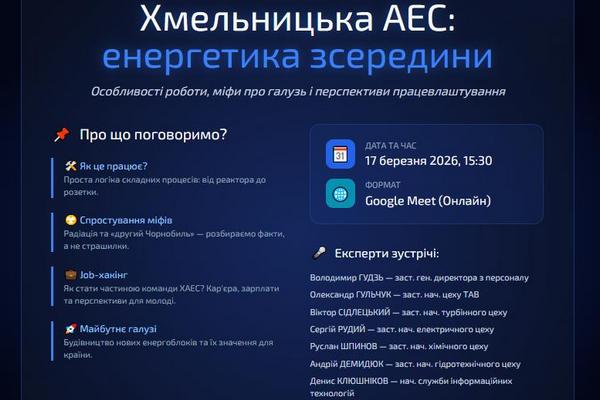 17 березня 2026 року Хмельницьким національним університетом організовано зустріч у режимі онлайн із роботодавцями Хмельницької атомної електростанції – одного з провідних енергетичних підприємств України. До… Читати далі »Зустріч студентів кафедри із роботодавцями Хмельницької АЕС