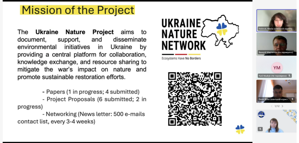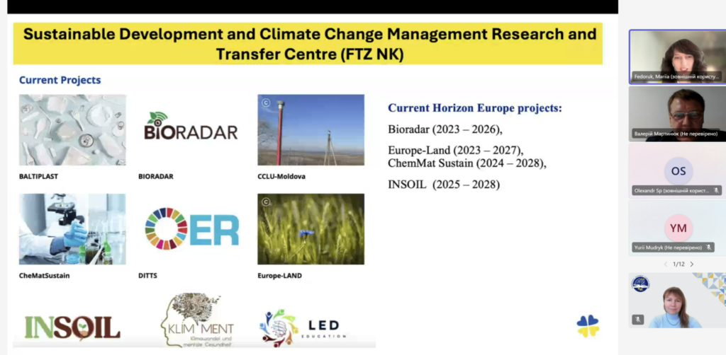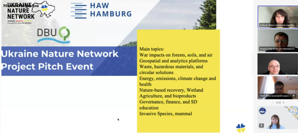 Ключовою спікеркою заходу стала Марія Федорук, PhD – наукова співробітниця Гамбурзький університет прикладних наук та координаторка міжнародної мережі Ukraine Nature Network. Під час виступу вона представила діяльність дослідницького і трансферного центру FTZ-NK (Sustainability & Climate Change Management), а також розповіла про ініціативу Ukraine Nature Project, спрямовану на підтримку екологічних проєктів в Україні та формування підходів до сталого відновлення екосистем.